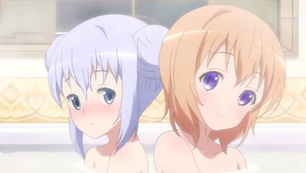 情節安排從更衣室的對話到心愛與智乃的共浴,雖然有一些養眼的鏡頭,但處理上並不腥羶,更多的是一種輕新的可愛感。拉花的咖啡杯,毛絨絨又圓滾滾的提比兔(雖然真身是……),圍繞在這些甜美的事物旁的少女們就顯得更加可人。